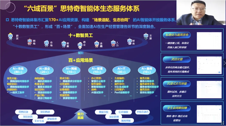 思特奇智能體產(chǎn)品和服務(wù)體系,以客戶價(jià)值為核心,覆蓋運(yùn)營商全業(yè)務(wù)場景,具備快速搭建、高效部署、價(jià)值提升等能力優(yōu)勢。本次發(fā)布上,思特奇AI技術(shù)專家實(shí)際演示了AI+網(wǎng)格營銷、AI+政企DICT場景的智能體能力和效果。