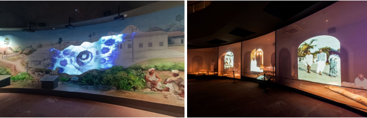 Design Habit設(shè)計(jì)總監(jiān)Bharat Upadhyay補(bǔ)充道:“我們不僅注重美學(xué)呈現(xiàn),更力求打造技術(shù)與敘事巧妙融合的觀展體驗(yàn)。我們運(yùn)用投影技術(shù),將抽象敘事轉(zhuǎn)化為生動而富有感染力的場景,使參觀者能夠身臨其境地體會甘地的教誨與哲學(xué)思想!