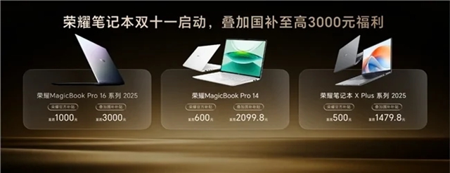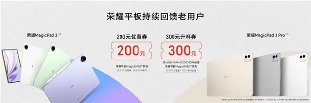 榮耀還公布了一系列持續(xù)回饋老用戶的福利:購買榮耀MagicPad3 Pro最高配置可享300元升杯券;即刻起,將在多款平板機(jī)型中陸續(xù)升級MagicOS 10與PC級WPS功能。另外,2021年4月后發(fā)布的榮耀PC全系也將獲得YOYO助理升級推送,雙11期間購買榮耀筆記本,更有疊加國補(bǔ)最高省3000元的優(yōu)惠福利。