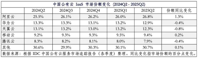 10月31日,IDC發(fā)布最新的《中國公有云服務市場(2025上半年)跟蹤》報告。報告顯示,2025年第二季度,阿里云在中國公有云基礎設施即服務(IaaS)市場的份額攀升至26.8%,連續(xù)五個季度份額上漲。