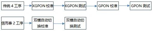 極限優(yōu)化:產(chǎn)線生產(chǎn)工藝流程成熟以后,甚至可進一步合并為1工序完成XGPON&GPON雙模校準(zhǔn)&測試