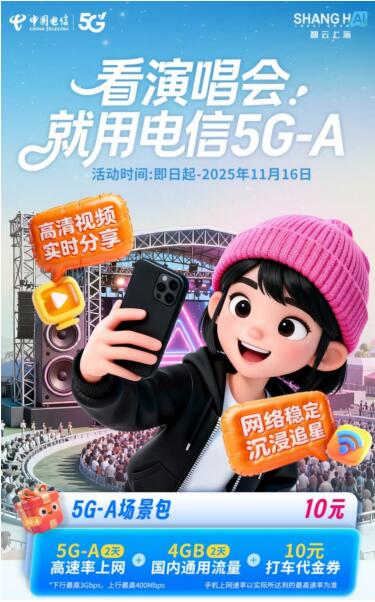 線下場景同樣精準(zhǔn)發(fā)力,上海電信在長寧來福士、飛洲國際商場等粉絲聚集熱點,及漕溪北路營業(yè)廳設(shè)置宣傳點位,粉絲打卡應(yīng)援時掃碼即可辦理,讓“邊打卡邊享高速網(wǎng)絡(luò)”成為觀演新潮流。線上便捷辦理與線下沉浸式體驗互補,讓5G-A場景包從單純的網(wǎng)絡(luò)服務(wù),升級為粉絲間傳遞心意、深化聯(lián)結(jié)的社交紐帶。​