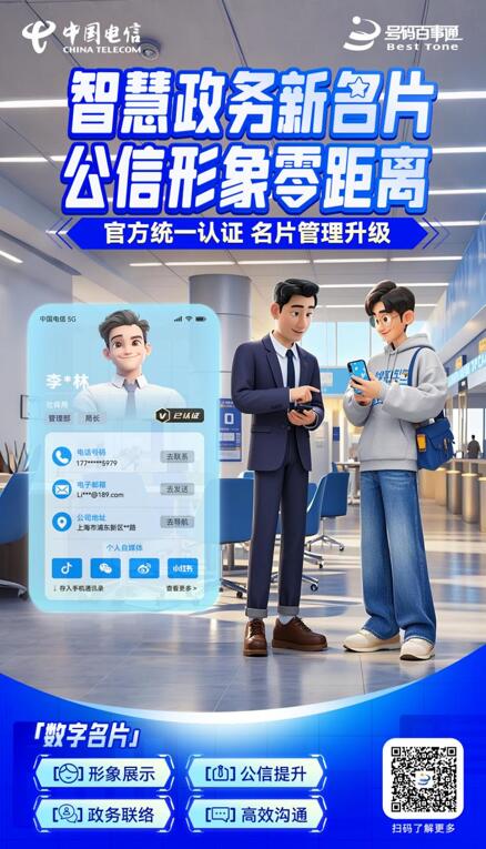 另外,數(shù)字名片可通過中國電信AI+人工雙重審核機(jī)制,為企業(yè)信息賦予認(rèn)證標(biāo)簽,避免因信息真?zhèn)坞y辨錯(cuò)過合作機(jī)會(huì)。