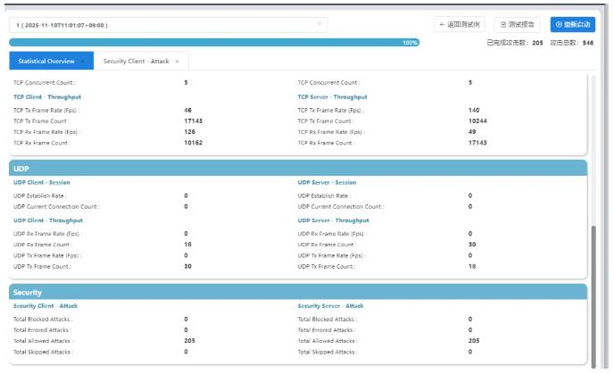 ●  測試執(zhí)行階段,平臺實時監(jiān)控測試進(jìn)度,統(tǒng)計詳細(xì)的測試數(shù)據(jù)和防護(hù)日志。通過精密的流量控制機(jī)制,確保測試流量的準(zhǔn)確性和可重復(fù)性。