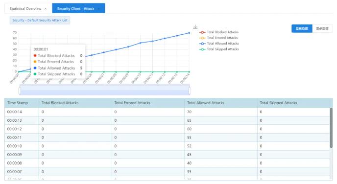 圖7 安全攻擊測試實時統(tǒng)計結(jié)果