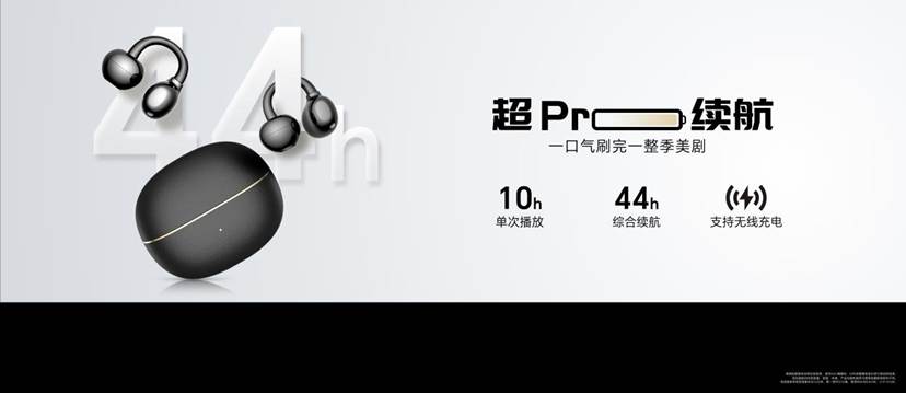 榮耀耳夾耳機(jī)2 Pro綜合續(xù)航長達(dá)44小時(shí),單次播放可達(dá)10小時(shí),大幅領(lǐng)先同類產(chǎn)品的續(xù)航能力,充滿一次電,就可實(shí)現(xiàn)一口氣刷完一整季美劇,并支持無線充電與快充兩種功能,其中快充功能實(shí)現(xiàn)充電10分鐘使用3小時(shí),徹底告別續(xù)航焦慮。