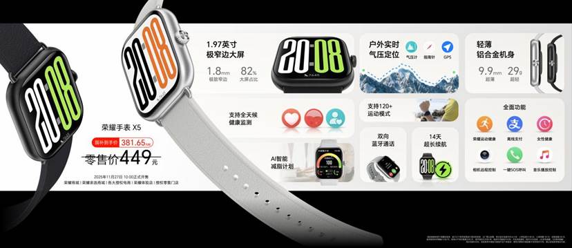 此外,榮耀500系列新品發(fā)布會(huì)還帶來了多款重磅新品。榮耀500系列帶來超級(jí)標(biāo)準(zhǔn)版和超級(jí)Pro版,以2億人像全能實(shí)況、驍龍8系旗艦芯片、8000mAh青海湖大電池超長續(xù)航、超美水晶小直屏最強(qiáng)質(zhì)感,重塑檔位標(biāo)準(zhǔn),為用戶帶來一步到位的用機(jī)體驗(yàn)。榮耀手表X5作為榮耀手表迄今最大屏、最窄黑邊、最輕薄的方表,是檔位中唯一同時(shí)配備游泳級(jí)防水、獨(dú)立GPS的智能手表;榮耀Earbuds S具備深度降噪、空間音頻,擁有超長續(xù)航;榮耀親選螢蜂Al投影儀Air獲得京東亮度認(rèn)證,投影表現(xiàn)更亮更清晰,搭載創(chuàng)新AI 智能操控,帶來全新操控交互體驗(yàn),點(diǎn)得準(zhǔn),更玩得爽!