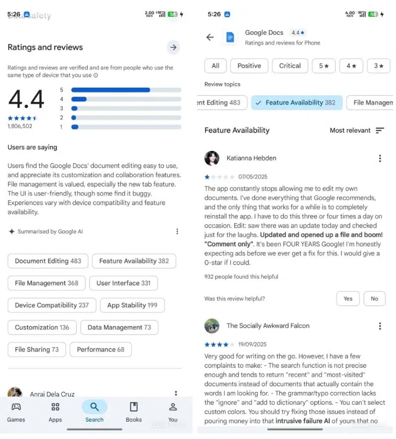 谷歌 Play 商店推出 AI 評(píng)論摘要功能,用戶可快速了解 App 優(yōu)缺點(diǎn)