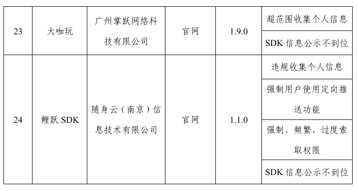 飛象網(wǎng)訊(致新/文)12月10日消息,工信部對APP、SDK違法違規(guī)收集使用個人信息等問題開展治理。近期,經(jīng)組織第三方檢測機構(gòu)進行抽查,共發(fā)現(xiàn)24款A(yù)PP及SDK存在侵害用戶權(quán)益行為(詳見附件),現(xiàn)予以通報。