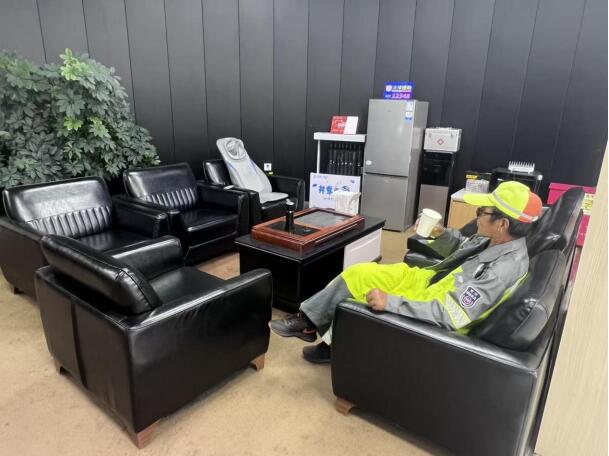 走進(jìn)營業(yè)廳的 “愛心驛站”,溫暖的氛圍撲面而來:飲用水、充電插座、急救包、休息座椅、報(bào)刊讀物等物資一應(yīng)俱全。環(huán)衛(wèi)工人、出租車司機(jī)、快遞員等戶外勞動(dòng)者可以到這里喝杯熱水、歇歇腳,再投入一天忙碌的工作。