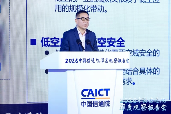 飛象網(wǎng)訊 低空經(jīng)濟作為國家戰(zhàn)略性新興產(chǎn)業(yè),正處于政策驅(qū)動與應(yīng)用探索雙輪加速的關(guān)鍵階段。其發(fā)展不僅關(guān)乎新質(zhì)生產(chǎn)力的培育,更對城市空間重構(gòu)、產(chǎn)業(yè)轉(zhuǎn)型升級和公共服務(wù)創(chuàng)新具有深遠(yuǎn)影響。12月13日,在“2026中國信通院深度觀察報告會”上,針對低空經(jīng)濟的發(fā)展現(xiàn)狀、統(tǒng)籌推進(jìn)機制及高質(zhì)量發(fā)展面臨的挑戰(zhàn)等問題,中國信息通信研究院首席專家續(xù)合元系統(tǒng)闡述了核心觀點。續(xù)合元指出:“低空經(jīng)濟要實現(xiàn)高質(zhì)量發(fā)展,必須堅持‘以場景為牽引、以協(xié)同為保障、以基建為底座’,分階段推進(jìn)高價值應(yīng)用落地,構(gòu)建多方協(xié)同、集約高效、安全可控的發(fā)展生態(tài)!