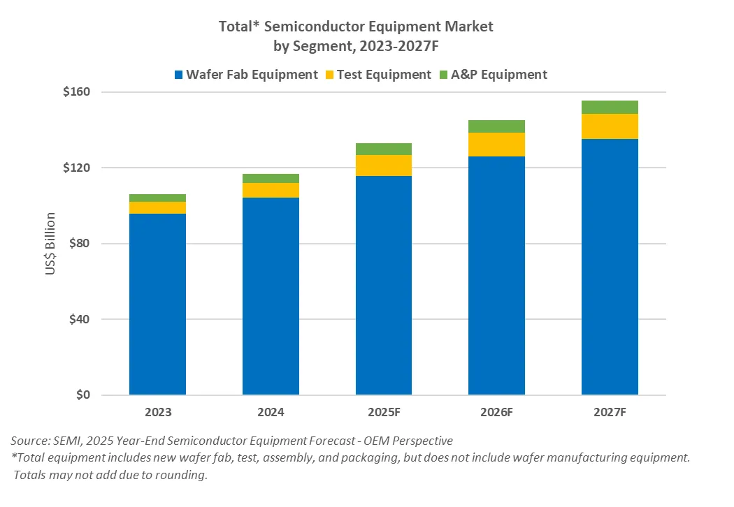 SEMI 預測:今年全球半導體設備市場 1330 億美元,2027 年突破 1500 億美元