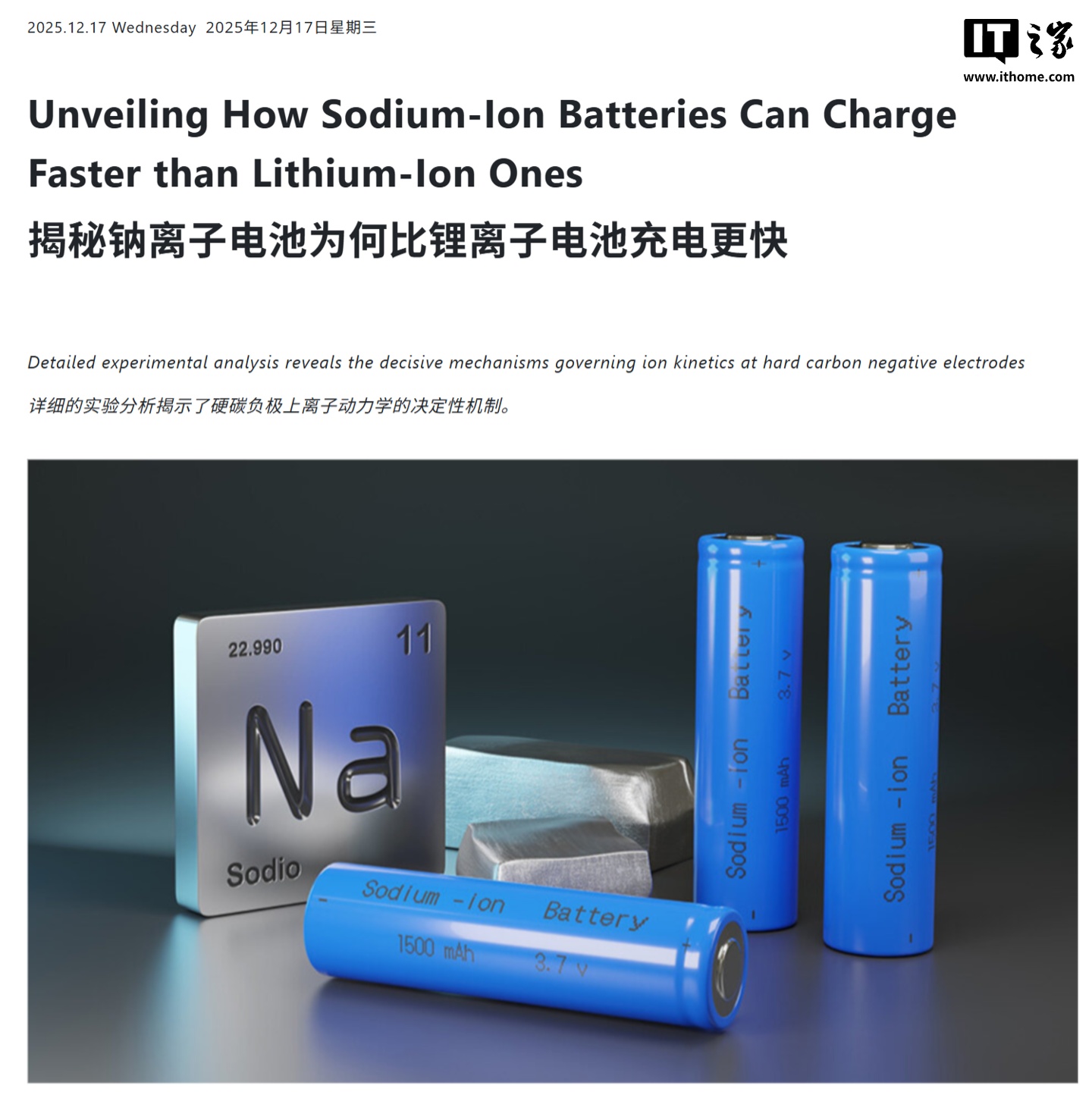 12 月 18 日消息,東京理科大學(xué)(TUS)昨日(12 月 17 日)發(fā)布博文,宣布其科研團(tuán)隊(duì)證實(shí),鈉離子電池(SIBs)在使用硬碳負(fù)極時(shí),其充電速度在本質(zhì)上可超越鋰離子電池(LIBs),有望成為智能手機(jī)電源的下一代解決方案。