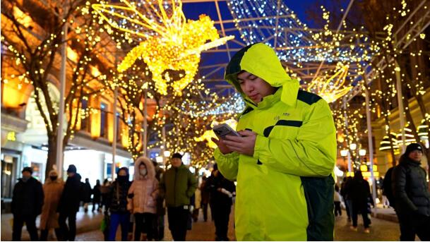 來自南方的劉女士剛離開冰雪大世界,乘坐地鐵來中央大街。在中央大街上,劉女士與朋友一邊翻看剛剛在冰雪大世界拍攝的照片,一邊商量將哪些照片發(fā)布于社交平臺!奥犝f晚上的中央大街和索菲亞大教堂非常美,拍照很出片!眲⑴空f。移動網(wǎng)絡的順暢,讓像劉女士這樣的移動客戶,隨時隨地都能發(fā)朋友圈、做直播,暢享冰雪旅游帶來的快樂。