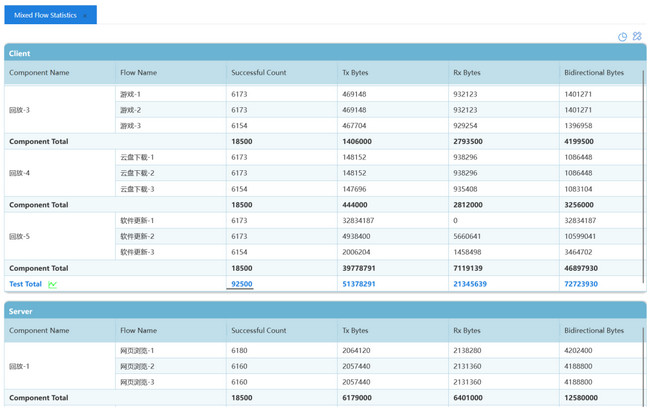 儀表測試結(jié)果支持L1到L7層及IPv4/IPv6雙棧的精準(zhǔn)帶寬分析,清晰看到有效數(shù)據(jù)的傳輸效率,洞察一切細(xì)節(jié)測試結(jié)果。