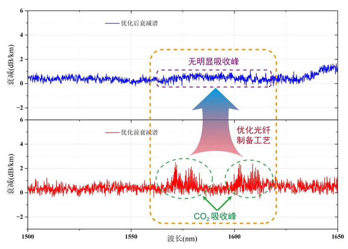 現(xiàn)網(wǎng)試點(diǎn)中發(fā)現(xiàn),C+L波段CO₂吸收峰可能干擾波分復(fù)用系統(tǒng)穩(wěn)定性。通過氣體成分優(yōu)化與封裝工藝改進(jìn),將吸收峰損耗波動降低至工程可容忍閾值,為超寬波段(S+C+L)穩(wěn)定傳輸?shù)於ɑA(chǔ)。