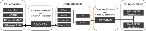 為實(shí)現(xiàn)硅前測(cè)試目標(biāo),必須預(yù)先驗(yàn)證測(cè)試套件,以避免耗費(fèi)時(shí)間調(diào)試測(cè)試用例本身。測(cè)試設(shè)置的可觀察性對(duì)早期發(fā)現(xiàn)和解決問(wèn)題有關(guān)鍵意義,能有效防止?jié)撛谌毕荼贿z留到最終的設(shè)計(jì)。圖2展示了用于ASIC仿真的O-RU測(cè)試協(xié)議棧和控制器測(cè)試設(shè)置。