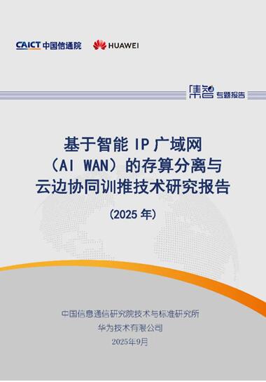 中國信通院標準所聯(lián)合發(fā)布《基于智能IP廣域網(wǎng)(AI WAN)的存算分離與云邊協(xié)同訓(xùn)推技術(shù)研究報告(2025年)》