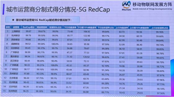 5G RedCap網(wǎng)絡(luò)質(zhì)量前十強,中國移動獨占前八!