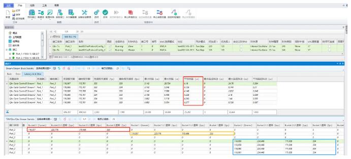 啟動(dòng)Qbv流量后,測(cè)試儀將在設(shè)定的基準(zhǔn)時(shí)間到達(dá)后開(kāi)始發(fā)送流量。通過(guò)查看測(cè)試儀提供的詳細(xì)統(tǒng)計(jì)信息,可進(jìn)行如下分析: