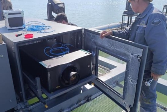 作為本次水幕秀投影系統(tǒng)的集成商,北京中清未來科技在Crimson WU32投影機(jī)的規(guī)劃、安裝和調(diào)試過程中發(fā)揮了關(guān)鍵作用。這些安裝在湖心浮排上的投影機(jī)面臨著大量水霧和濕氣的挑戰(zhàn)。為此,項(xiàng)目團(tuán)隊(duì)為其定制了配備恒溫與冷卻系統(tǒng)的防水外殼,有效調(diào)節(jié)內(nèi)部溫濕度,使其免受環(huán)境侵蝕,確保在各種天氣條件下穩(wěn)定運(yùn)行。