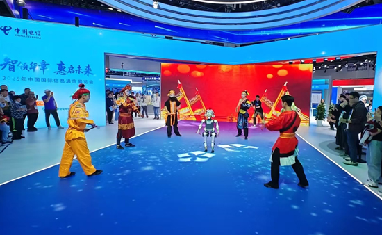 中國電信展臺,一臺具身智能機器人與人類舞者共同演繹了充滿嶺南特色的英歌舞。機器人動作精準,與人類配合默契。這背后是中國電信5G-A超低時延網(wǎng)絡、云計算與邊緣計算能力,保障了海量感知數(shù)據(jù)的傳輸與AI的實時決策控制。