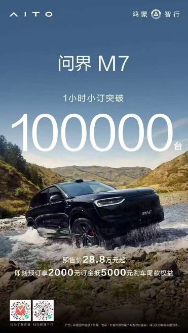1小時(shí)小訂破10萬臺(tái)!全新問界M7以“全維進(jìn)化”引爆預(yù)定熱潮