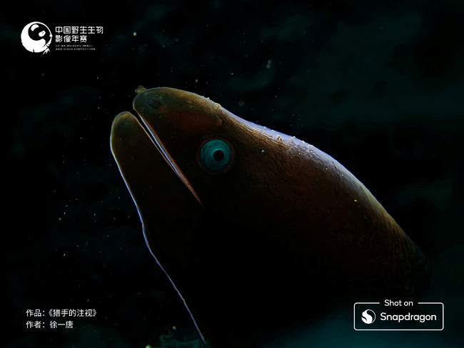 本屆年賽中,驍龍手機組特別獎再次展現(xiàn)了移動影像在自然表達中的獨特魅力。攝影單元冠軍作品之一《獵手的注視》由徐一唐創(chuàng)作,畫面中恰到好處的輪廓光還原了裸胸鱔——這位夜間獵手的壓迫感。攝影師依托裸胸鱔晝伏夜出的習(xí)性,提前在其棲身的洞口布置燈光,耐心靜待拍攝目標以完美角度進入取景框。而搭載驍龍平臺的手機,不僅憑借卓越的暗光拍攝能力,在低光照環(huán)境下精準呈現(xiàn)生靈的細節(jié),更以強勁的長續(xù)航表現(xiàn),支撐攝影師完成長時間蹲守拍攝。