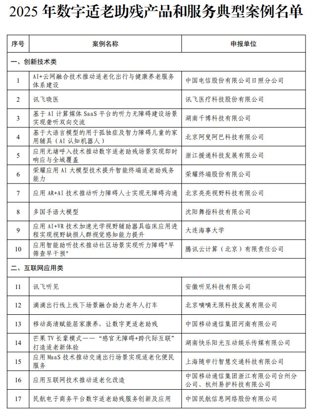 工信部公示2025年數(shù)字適老助殘產(chǎn)品和服務(wù)典型案例