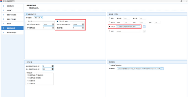 測試向?qū)峁┧念悳y試選項,本次重點選擇 “非對稱吞吐量測試”(測試結(jié)果將同步統(tǒng)計吞吐量、時延及抖動數(shù)據(jù)),其余選項可根據(jù)需求靈活勾選: