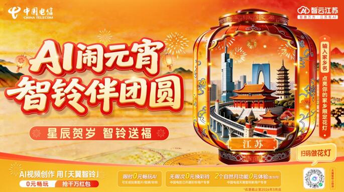 馬年啟新章,元宵添喜樂!中國電信天翼智鈴正以AI之力煥新通信體驗,惠及江蘇用戶,為“智云江蘇”建設(shè)添彩賦能。恰逢元宵佳節(jié)、馬年新始,即刻解鎖天翼智鈴,開啟你的專屬創(chuàng)意之旅,讓每一次來電,都成為一場創(chuàng)意展示,讓每一次等待,都充滿驚喜與美好,在新的一年,讓每一通來電都有專屬精彩!
