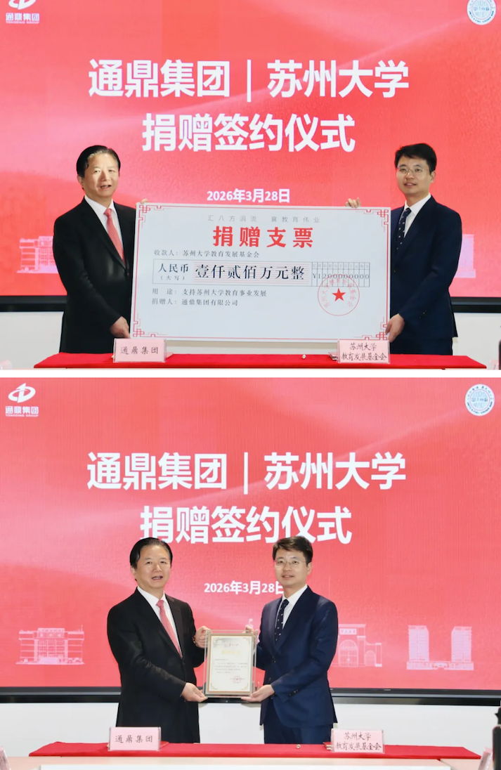 校企協(xié)同方能共贏,產(chǎn)教融合方可行穩(wěn)致遠(yuǎn)。此次向蘇州大學(xué)捐資助學(xué),不僅是通鼎集團堅守“科技賦能、綠色共贏、公益向善”核心價值觀的生動縮影,更是雙方立足地方發(fā)展、共謀前沿突破的新起點。